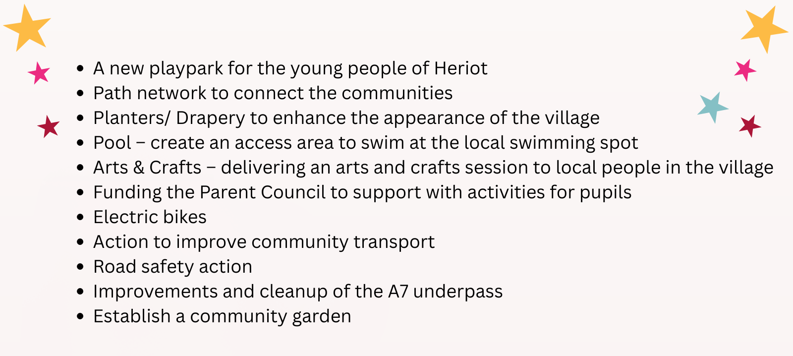 It's exciting to think about the positive impact these initiatives could have on bringing people together and improving life in Heriot for everyone.
