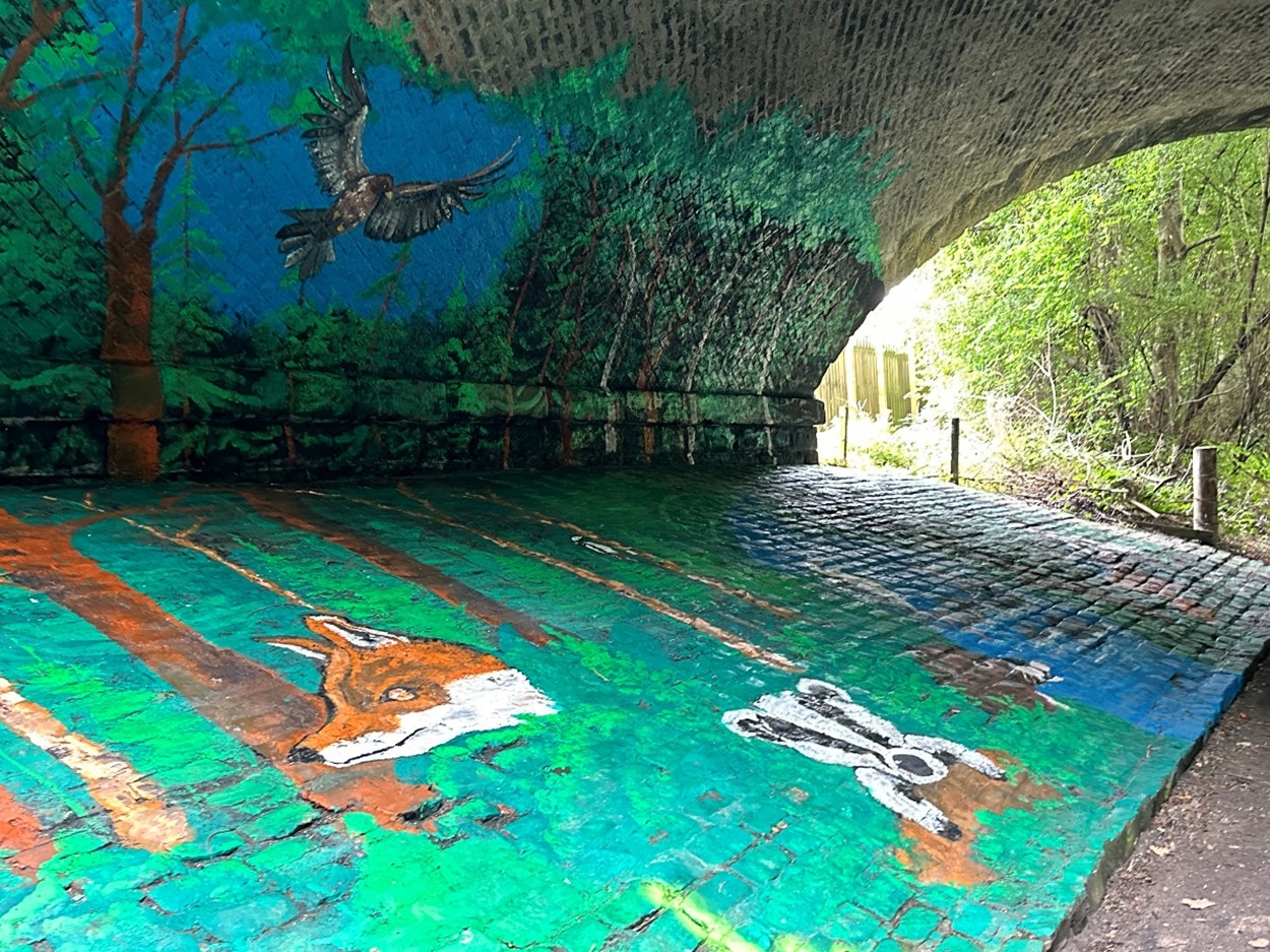 Over the years, the mural has been kept bright and well-maintained by local Community Green Initiative volunteers, with refreshed painting in 2011 and a redesign in 2020 honouring NHS staff and key workers during the Covid-19 pandemic. Sadly in 2022, repointing works on the bridge's stonework inadvertently removed large sections of the mural’s paintwork. While structurally necessary, this left the underpass scarred and uninviting. The loss of the artwork risked undoing years of community effort to maintain the space as a safe, pleasant thoroughfare, potentially allowing it to revert to a neglected area vulnerable to antisocial behaviour.