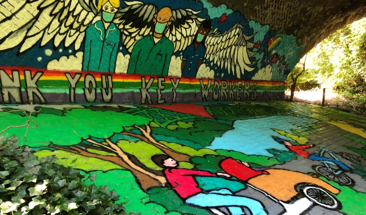 Over the years, the mural has been kept bright and well-maintained by local Community Green Initiative volunteers, with refreshed painting in 2011 and a redesign in 2020 honouring NHS staff and key workers during the Covid-19 pandemic. Sadly in 2022, repointing works on the bridge's stonework inadvertently removed large sections of the mural’s paintwork. While structurally necessary, this left the underpass scarred and uninviting. The loss of the artwork risked undoing years of community effort to maintain the space as a safe, pleasant thoroughfare, potentially allowing it to revert to a neglected area vulnerable to antisocial behaviour.